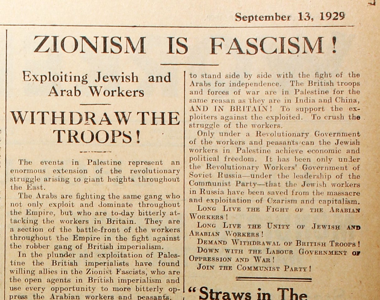Communist opposition to Zionism at this point was very different to the antisemitic conspiratorial and Nazi-inflected versions that came later and was based on the view that Zionism diverted Jewish workers away from the class struggle and also that Zionism — in the light of the Balfour Declaration — served the interests of British imperialism.